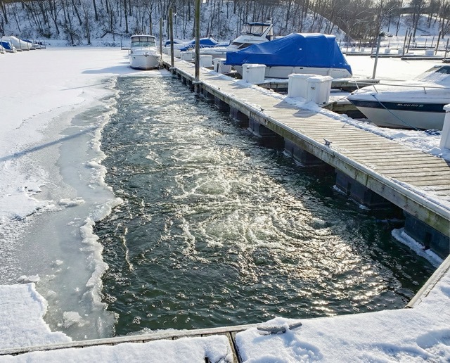 Deicing prevents ice formation around docks, pilings, and boats by circulating warmer bottom water to the surface. In freezing climates, ice expansion and movement can lift pilings, crush hulls, and destroy dock structures. Aeration hose systems, also known as bubbler systems, counter this damage by continuously moving water and disrupting ice formation before it can take hold.
